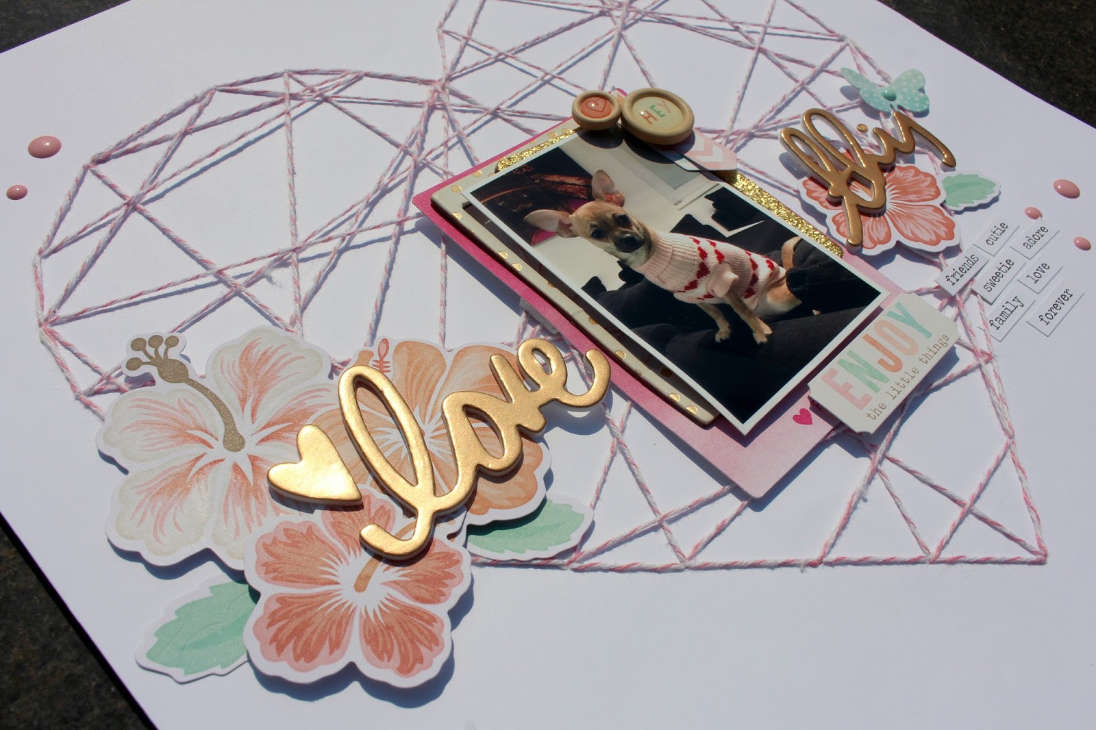 Oggi vi mostro un layout che ho scrapliftato qualche settimana fa per partecipare a Scrap2days. L'originale è questo e lo ha fatto la bravissima Bea Valint, una delle insegnanti di quel fantastico weekend. Io l'ho reinterpretato mantenendo sempre una sagoma a forma di cuore sullo sfondo, solo che invece di ritagliarlo con la Silhouette, l'ho cucito con del twine rosa.